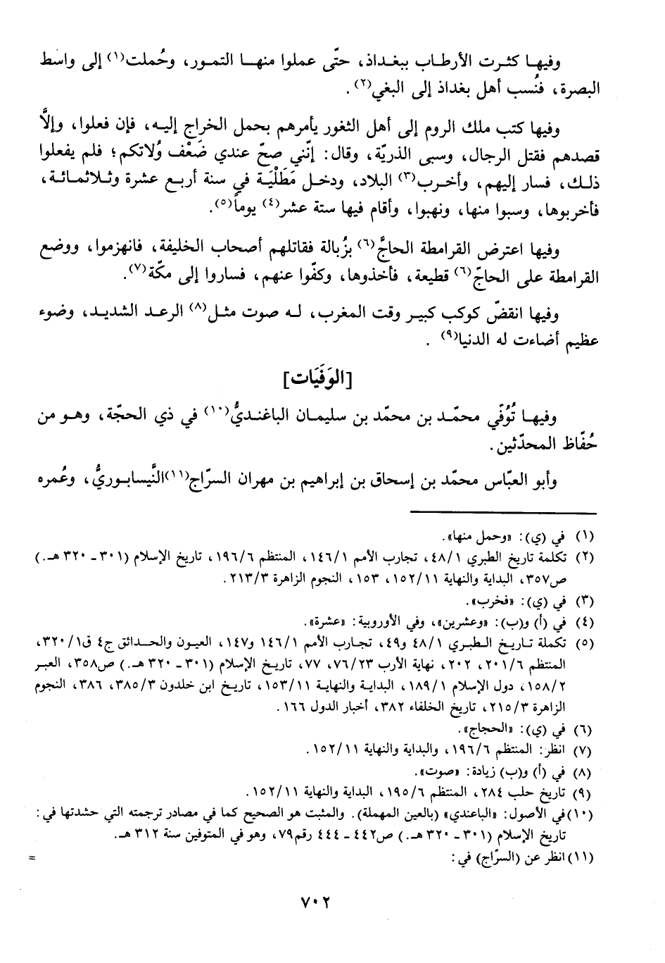 وَفِيهَا كَثُرَتِ الْأَرْطَابُ بِبَغْدَاذَ، حَتَّى عَمِلُوا مِنْهَا التُّمُورَ، وَحُمِلَتْ إِلَى وَاسِطَ وَالْبَصْرَةِ، فَنُسِبَ أَهْلُ بَغْدَاذَ إِلَى الْبَغْيِ.