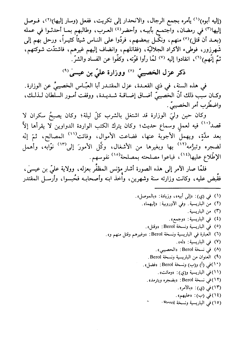 ذِكْرُ عَزْلِ الْخَصِيبِيِّ وَوِزَارَةِ عَلِيِّ بْنِ عِيسَى