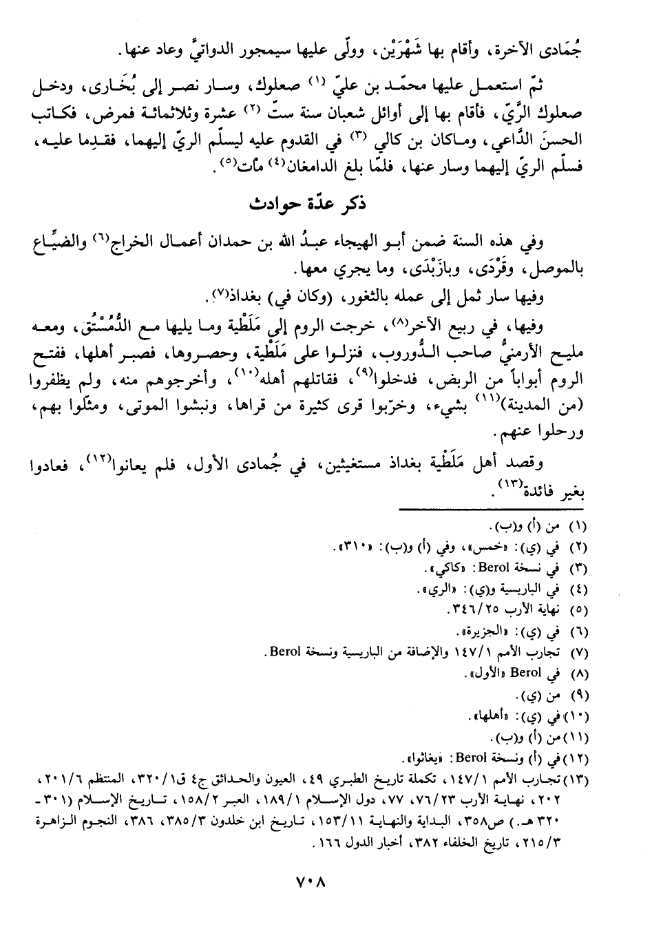 وَفِي هَذِهِ السَّنَةِ ضَمِنَ أَبُو الْهَيْجَاءِ عَبْدُ اللَّهِ بْنُ حَمْدَانَ أَعْمَالَ الْخَرَاجِ وَالضِّيَاعِ بِالْمَوْصِلِ، وَقَرْدَى، وَبَازَبُدَى، وَمَا يَجْرِي مَعَهَا.