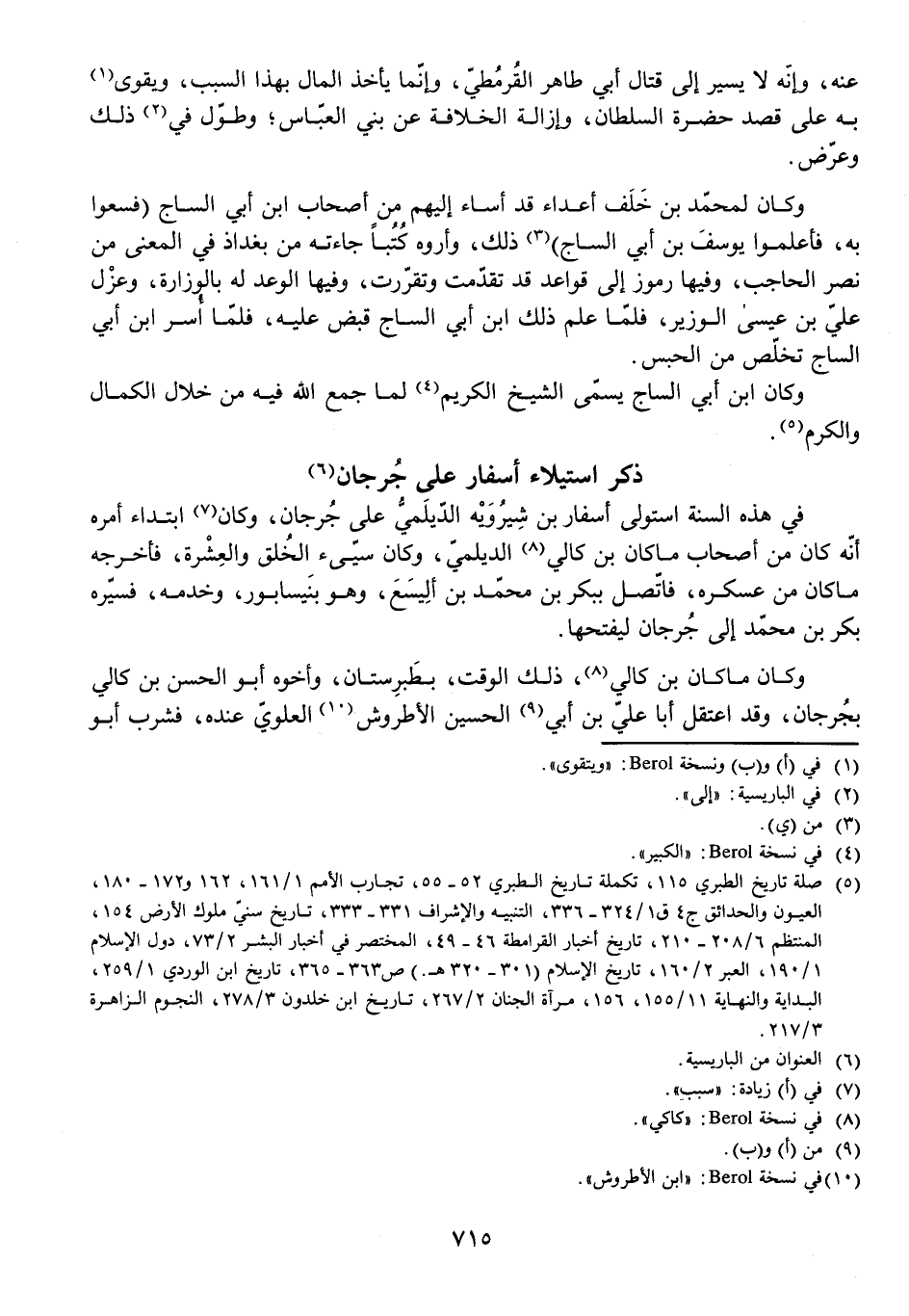 عَنْهُ، وَإِنَّهُ لَا يَسِيرُ إِلَى قِتَالِ أَبِي طَاهِرٍ الْقَرْمَطِيِّ، وَإِنَّمَا يَأْخُذُ الْمَالَ بِهَذَا السَّبَبِ، وَيَقْوَى بِهِ عَلَى قَصْدِ حَضْرَةِ السُّلْطَانِ، وَإِزَالَةِ الْخِلَافَةِ عَنْ بَنِي الْعَبَّاسِ، وَطَوَّلَ فِي ذَلِكَ وَعَرَّضَ.