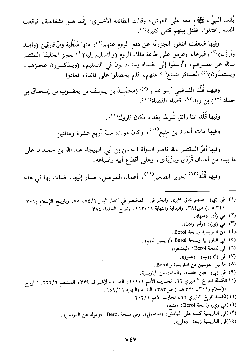 وَفِيهَا ضَعُفَتِ الثُّغُورُ الْجُزُرِيَّةُ عَنْ دَفْعِ الرُّومِ عَنْهُمْ، مِنْهَا مَلَطْيَةُ وَمَيَّافَارِقِينُ (وَآمِدُ وَأَرْزَنُ) وَغَيْرُهَا، وَعَزَمُوا عَلَى طَاعَةِ مَلِكِ الرُّومِ (وَالتَّسْلِيمِ إِلَيْهِ) لِعَجْزِ الْخَلِيفَةِ الْمُقْتَدِرِ بِاللَّهِ عَنْ نَصْرِهِمْ، وَأَرْسَلُوا إِلَى بَغْدَاذَ يَسْتَأْذِنُونَ فِي التَّسْلِيمِ، (وَيَذْكُرُونَ عَجْزَهُمْ، وَيَسْتَمِدُّونَ) الْعَسَاكِرَ لِتَمْنَعَ عَنْهُمْ، فَلَمْ يَحْصُلُوا عَلَى فَائِدَةٍ، فَعَادُوا.
