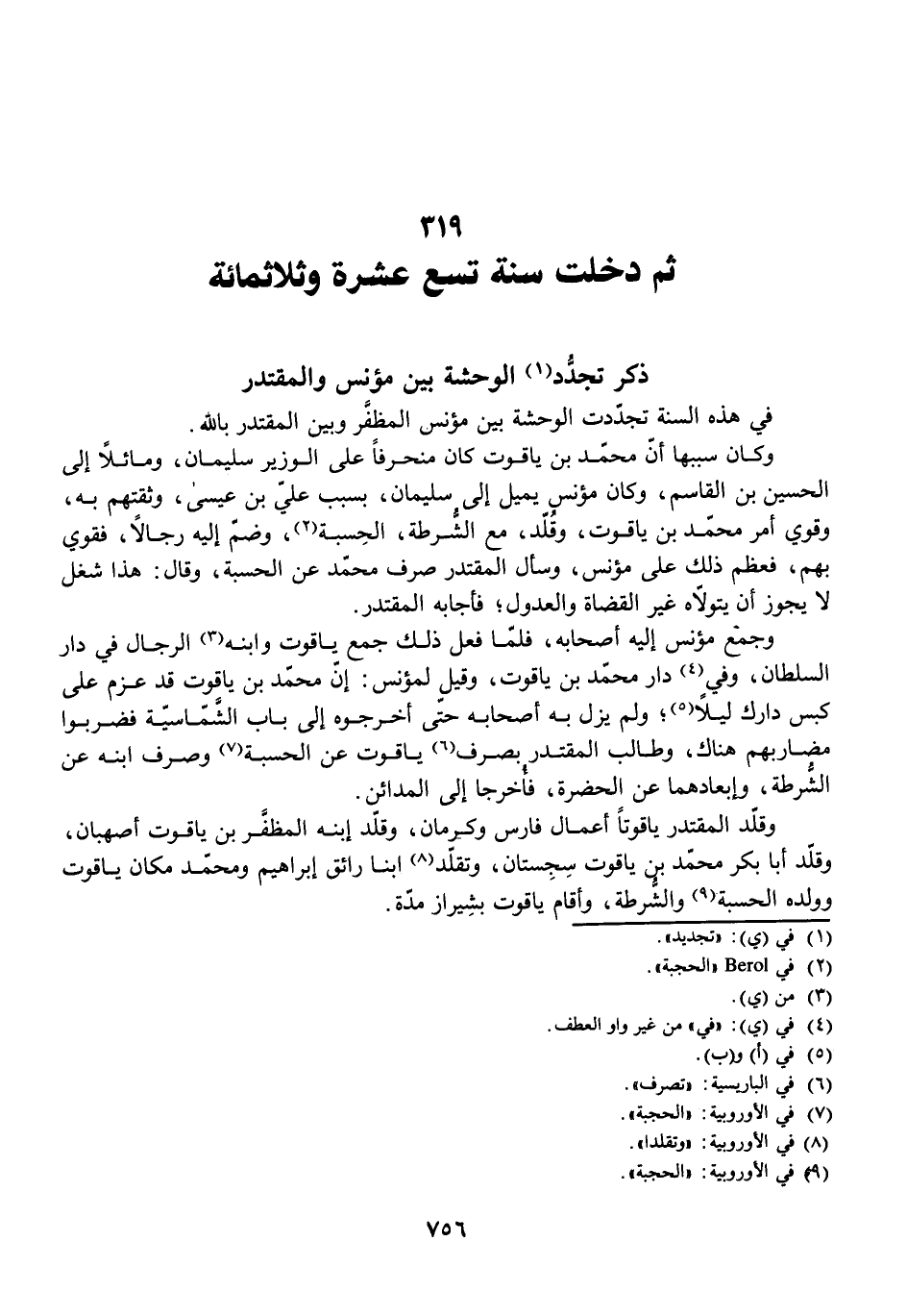 [ثُمَّ دَخَلَتْ سَنَةُ تِسْعَ عَشْرَةَ وَثَلَاثِمِائَة]