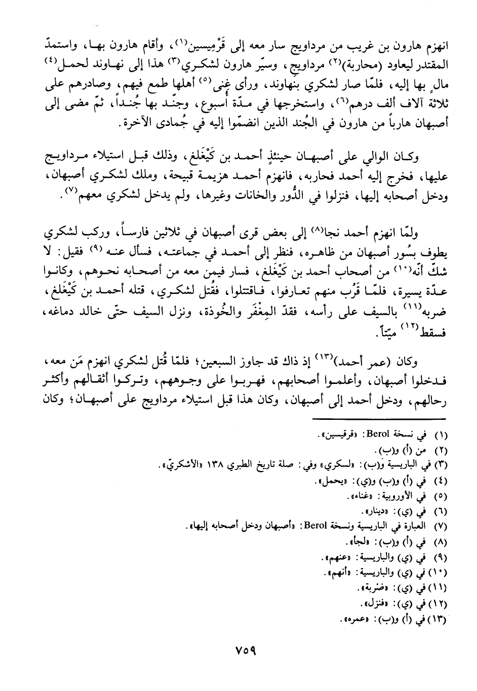 وَكَانَ (عُمْرُ أَحْمَدَ) إِذْ ذَاكَ قَدْ جَاوَزَ السَّبْعِينَ، فَلَمَّا قُتِلَ لَشْكَرِيُّ انْهَزَمَ مَنْ مَعَهُ، فَدَخَلُوا أَصْبَهَانَ، وَأَعْلَمُوا أَصْحَابَهُمْ، فَهَرَبُوا عَلَى وُجُوهِهِمْ، وَتَرَكُوا أَثْقَالَهُمْ وَأَكْثَرَ رِحَالِهِمْ، وَدَخَلَ أَحْمَدُ إِلَى أَصْبَهَانَ، وَكَانَ هَذَا قَبْلَ اسْتِيلَاءِ مَرْدَاوِيجَ عَلَى أَصْبَهَانَ، وَكَانَ