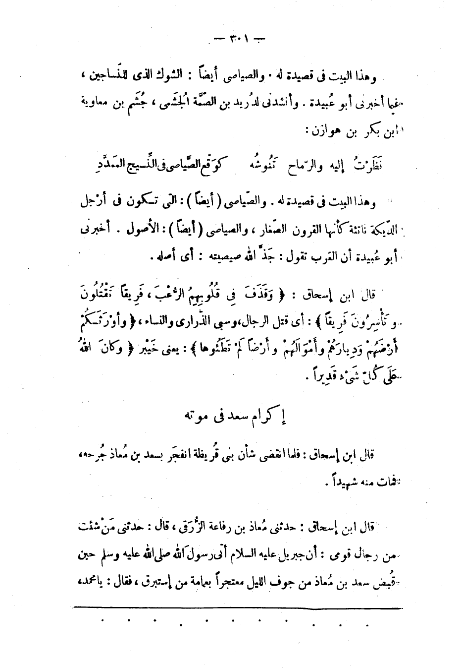 قَالَ ابْنُ إسْحَاقَ: فَلَمّا انْقَضَى شَأْنُ بَنِي قريظة انْفَجَرَ بِسَعْدِ بْنِ مُعَاذٍ جُرْحُهُ، فَمَاتَ مِنْهُ شَهِيدًا.