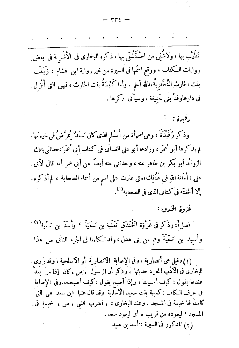 وَذَكَرَ رُفَيْدَةَ، وَهِيَ امْرَأَةٌ مِنْ أَسْلَمَ الّذِي كَانَ سَعْدٌ يُمَرّضُ فِي خَيْمَتِهَا لَمْ يَذْكُرْهَا أَبُو عُمَرَ، وَزَادَهَا أَبُو عَلِيّ الْغَسّانِيّ فِي كِتَابِ أَبِي عُمَرَ، حَدّثَنِي بِتِلْكَ الزّوَائِدِ أَبُو بَكْرِ بْنُ طَاهِرٍ عَنْهُ، وَحَدّثَنِي عَنْهُ أَيْضًا عَنْ أَبِي عُمَرَ أَنّهُ قَالَ لِأَبِي عَلِيّ: أَمَانَةُ اللهِ فِي عُنُقِك، مَتَى عَثَرْت عَلَى اسْمٍ مِنْ أَسْمَاءِ الصّحَابَةِ، لَمْ أَذْكُرْهُ إلّا أَلْحَقْته فِي كِتَابِي الّذِي فِي الصّحَابَةِ «1» .