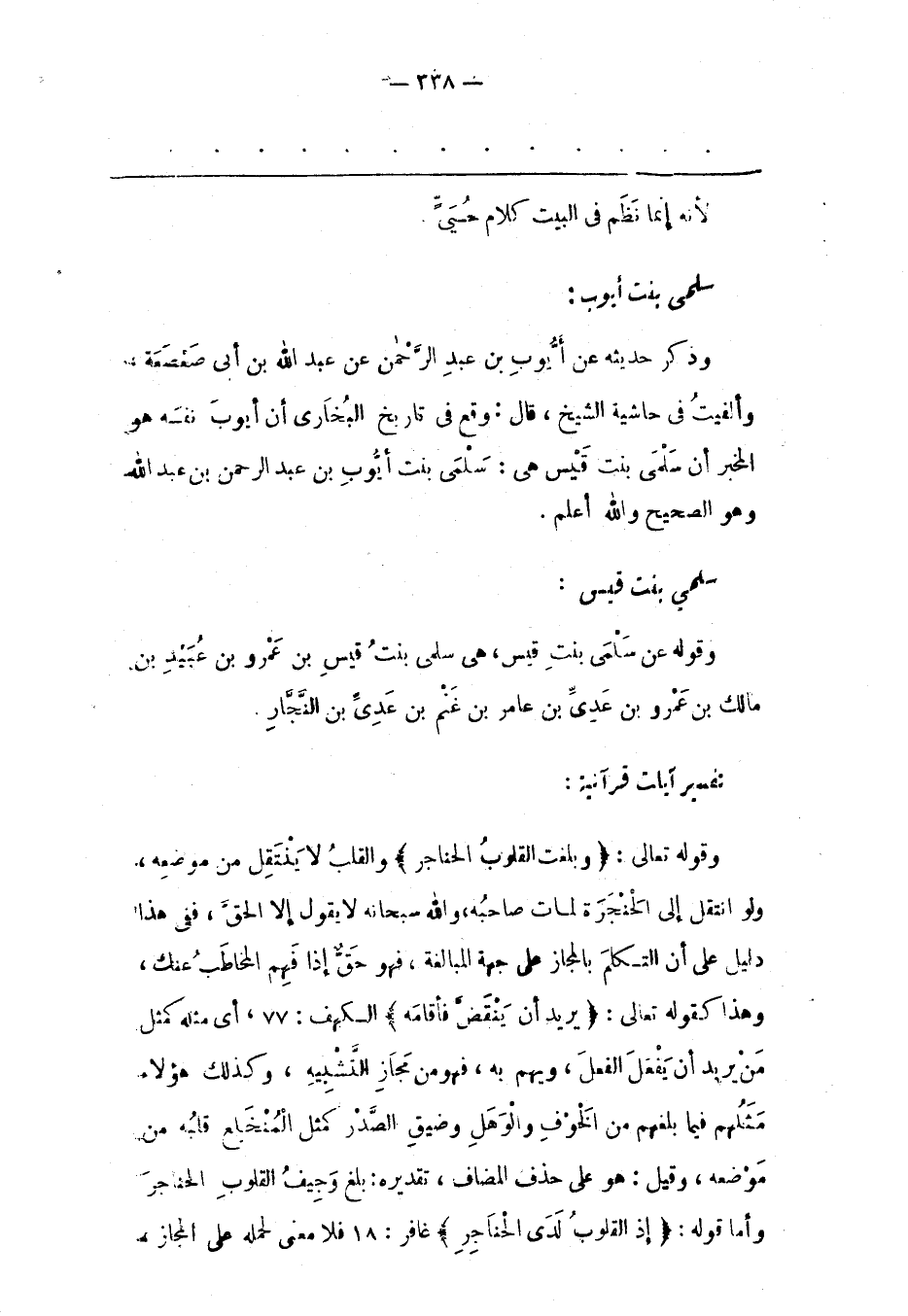 وَذَكَرَ حَدِيثَهُ عَنْ أَيّوبَ بْنِ عَبْدِ الرّحْمَنِ عَنْ عَبْدِ اللهِ بْنِ أَبِي صَعْصَعَةَ، وَأَلْفَيْت فِي حَاشِيَةِ الشّيْخِ، قَالَ: وَقَعَ فِي تَارِيخِ الْبُخَارِيّ أَنّ أَيّوبَ نَفْسَهُ هُوَ الْمُخْبِرُ أَنّ سَلْمَى بِنْتَ قَيْسٍ هِيَ: سَلْمَى بِنْتُ أَيّوبَ بْنِ عَبْدِ الرّحْمَنِ بْنِ عَبْدِ اللهِ وَهُوَ الصّحِيحُ وَاَللهُ أَعْلَمُ.