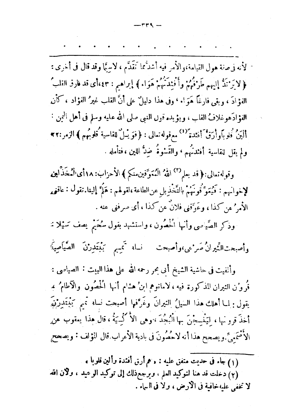 أَلْيَنُ قُلُوبًا وَأَرَقّ أَفْئِدَةً «1» مَعَ قَوْلِهِ تَعَالَى: فَوَيْلٌ لِلْقاسِيَةِ قُلُوبُهُمْ الزمر: 22 ولم يقل للقاسية أفئلتهم، والقسوة ضد اللين، فتأمله.