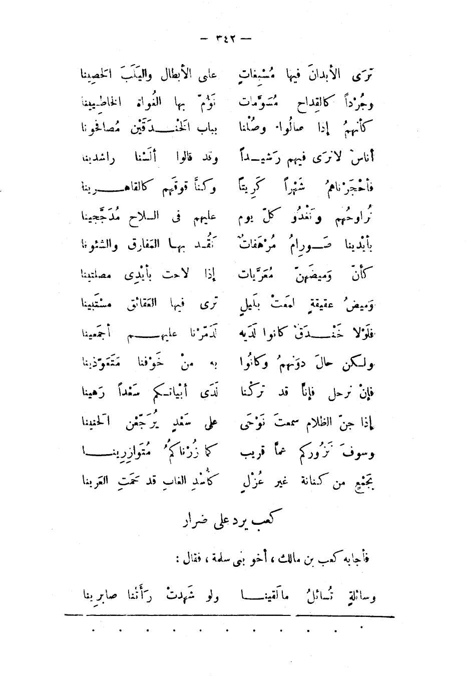 كعب يرد عَلَى ضِرَارٍ فَأَجَابَهُ كَعْبُ بْنُ مَالِكٍ، أَخُو بنى سلمة، فقال: