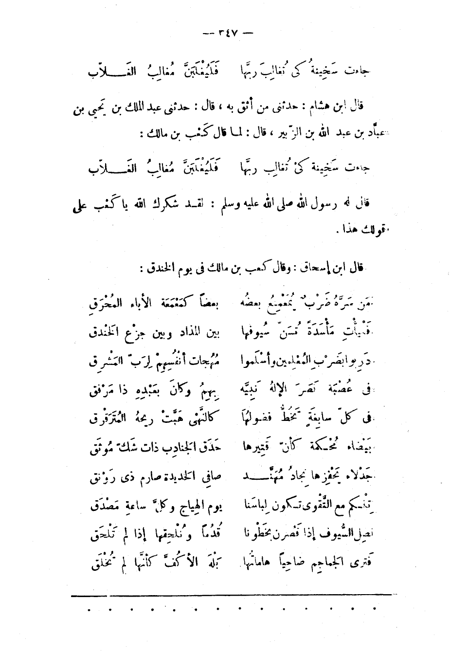 قَالَ ابْنُ هِشَامٍ: حَدّثَنِي مَنْ أَثِقُ بِهِ، قَالَ: حَدّثَنِي عَبْدُ الْمَلِكِ بْنُ يَحْيَى بْنِ عَبّادِ بْنِ عَبْدِ اللهِ بْنِ الزّبَيْرِ، قَالَ: لَمّا قَالَ كَعْبُ بْنُ مَالِكٍ: