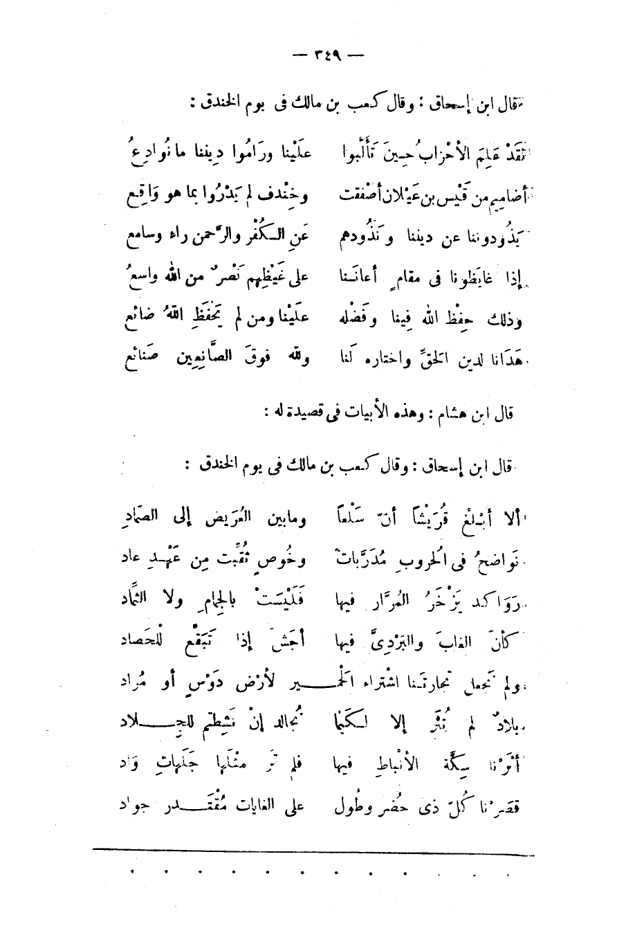 قَالَ ابْنُ إسْحَاقَ: وَقَالَ كَعْبُ بْنُ مَالِكٍ فِي يَوْمِ الْخَنْدَقِ: