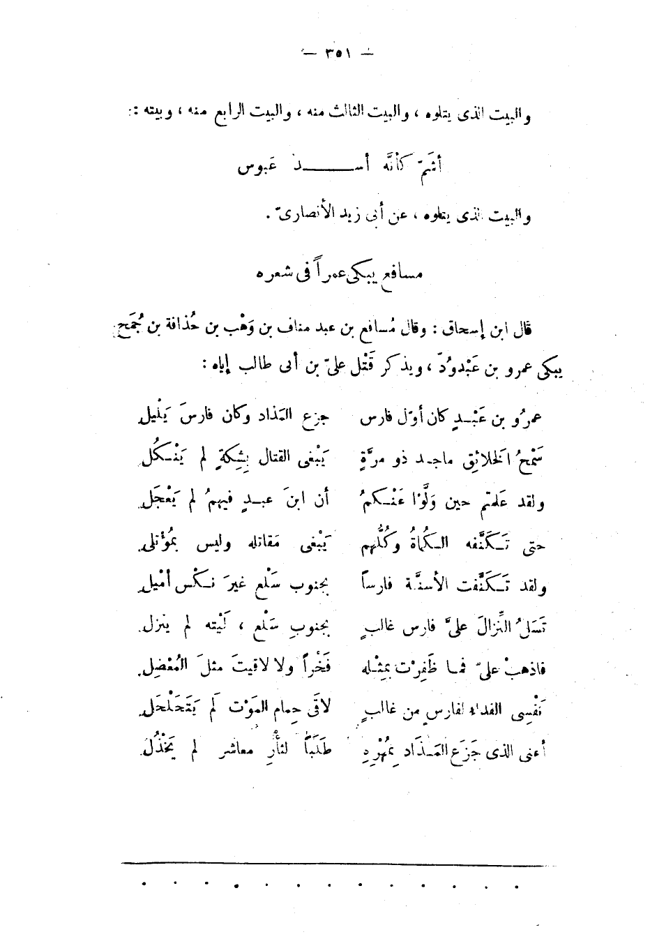 عَمْرُو بْنُ عَبْدٍ كَانَ أَوّلَ فَارِسٍ ... جَزَعَ الْمَذَادَ وَكَانَ فَارِسَ يَلْيَلِ