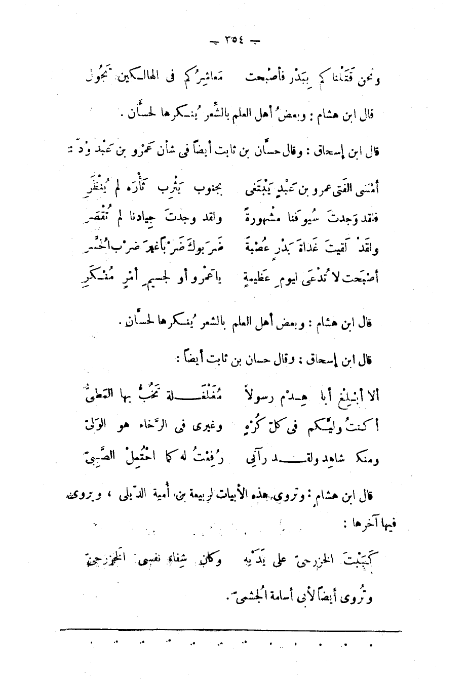 قَالَ ابْنُ هِشَامٍ: وَبَعْضُ أَهْلِ الْعِلْمِ بِالشّعْرِ يُنْكِرُهَا لِحَسّانَ.