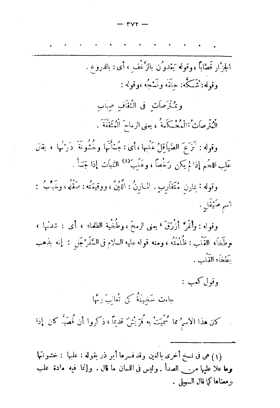 (1) هى فى نسخ أخرى بالغين وقد فسرها أبو ذر بقوله: علبها: خشونتها وما علا عليها من الصدأ. وليس فى اللسان ما قال. وإنما فيه مادة علب ومعناها كما قال السهيلى.