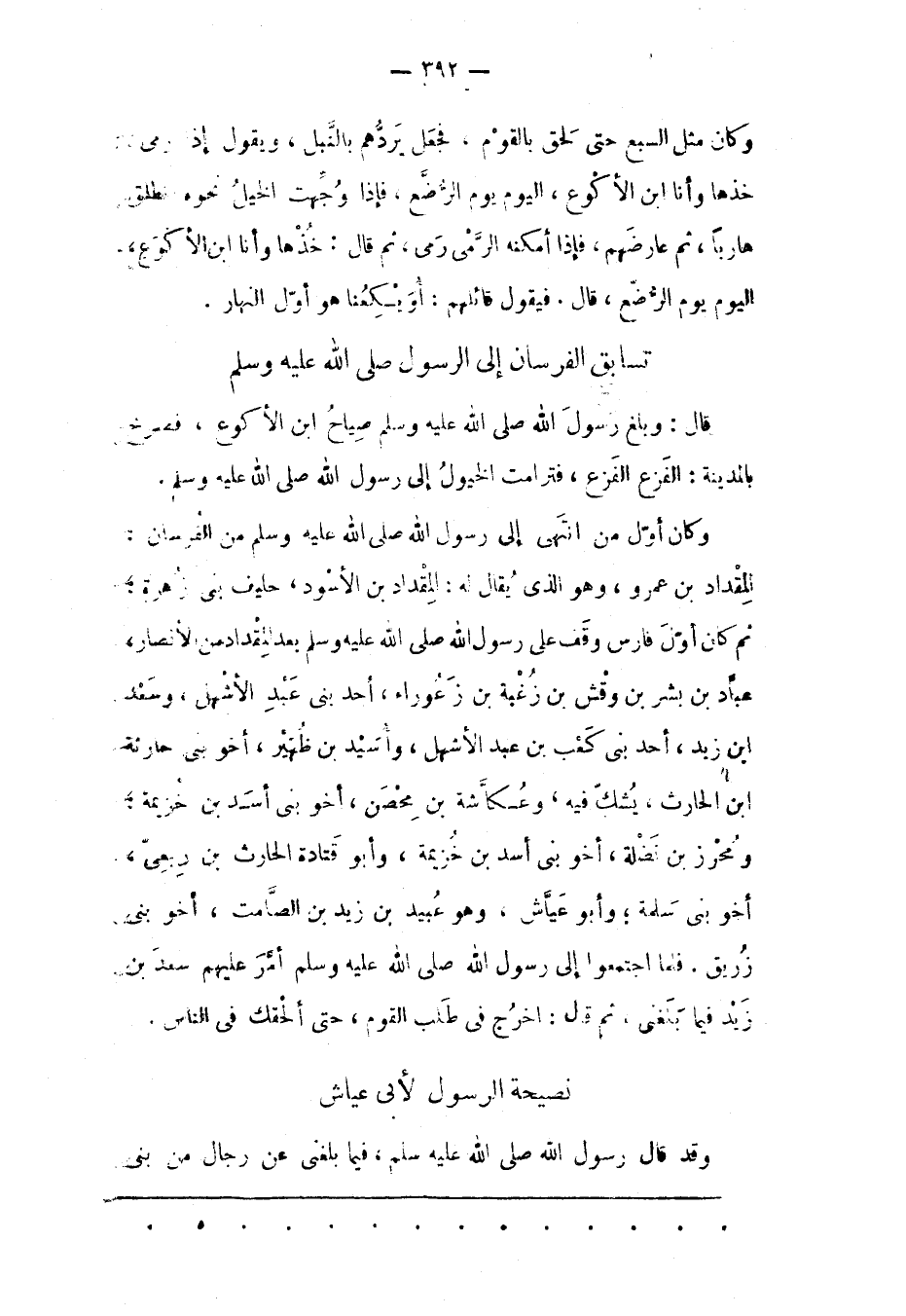 وَكَانَ أَوّلَ مَنْ انْتَهَى إلَى رَسُولِ اللهِ صَلَّى اللَّهُ عَلَيْهِ وَسَلَّمَ مِنْ الْفُرْسَانِ:
