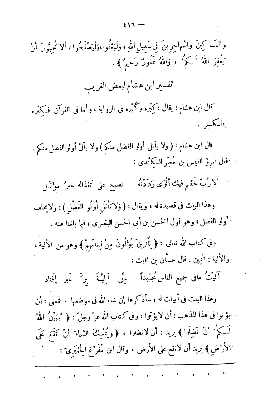 قَالَ ابْنُ هِشَامٍ: (وَلَا يَأْتَلِ أُولُو الْفَضْلِ مِنْكُمْ) وَلَا يَأْلُ أُولُو الْفَضْلِ مِنْكُمْ.