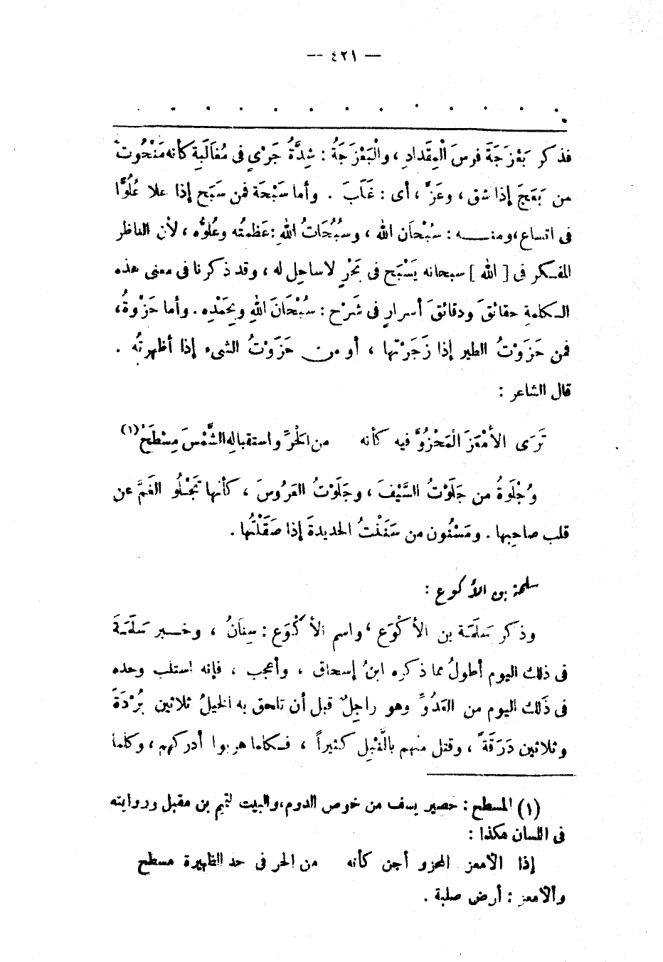 تَرَى الْأَمْعَزَ الْمَحْزُوّ فِيهِ كَأَنّهُ ... مِنْ الْحَرّ وَاسْتِقْبَالِهِ الشّمْسَ مَسْطَحُ «1»