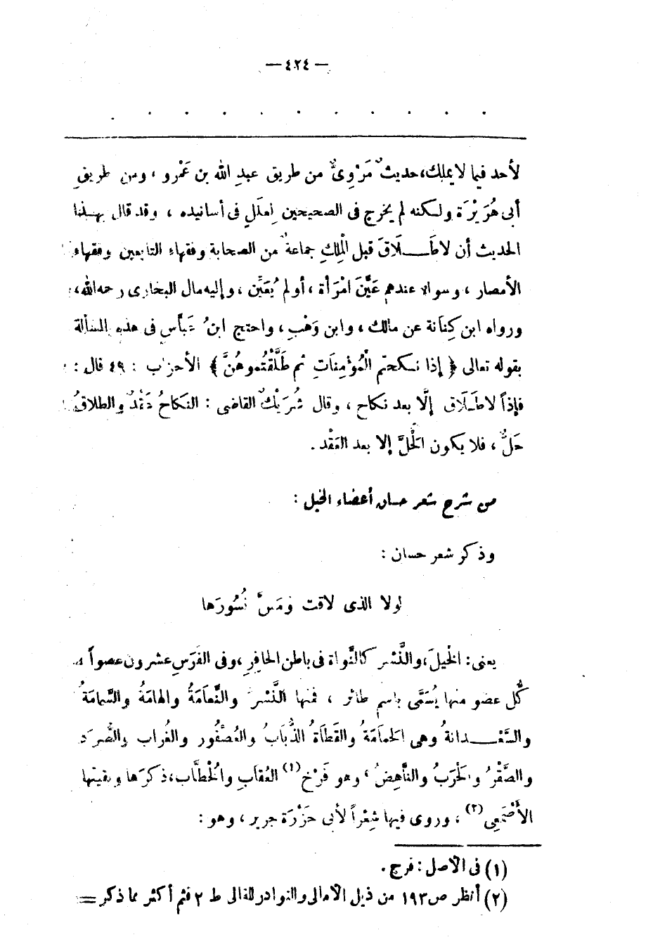 مِنْ شَرْحِ شِعْرِ حَسّانَ أَعْضَاءَ الْخَيْلِ: