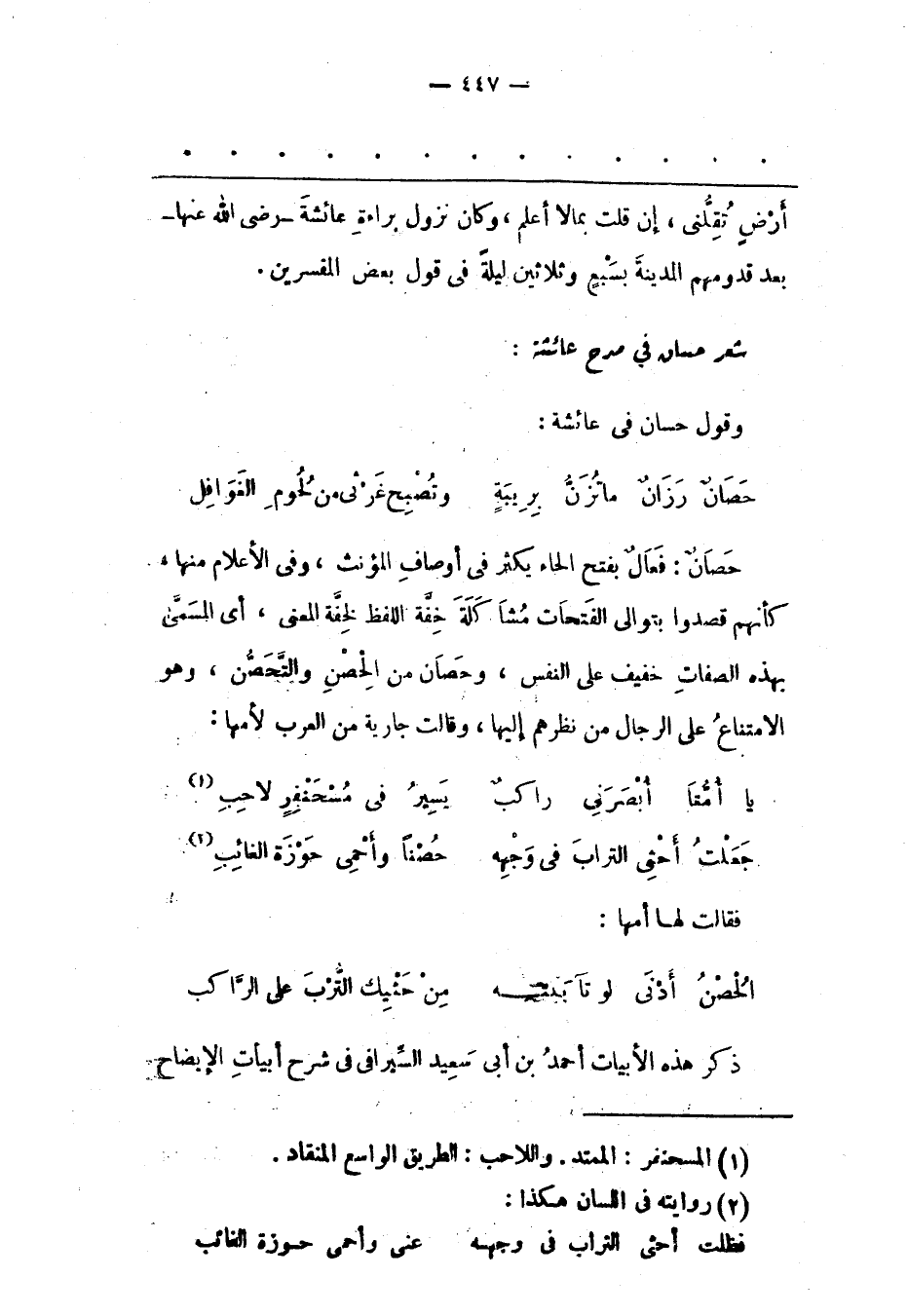 شِعْرُ حَسّانَ فِي مَدْحِ عَائِشَةَ: