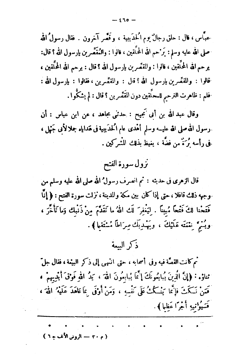عَبّاسٍ، قَالَ: حَلَقَ رِجَالٌ يَوْمَ الْحُدَيْبِيَةِ، وَقَصّرَ آخَرُونَ. فَقَالَ رَسُولُ اللهِ صَلَّى اللَّهُ عَلَيْهِ وَسَلَّمَ: يَرْحَمُ اللهُ الْمُحَلّقِينَ، قَالُوا: وَالْمُقَصّرِينَ يَا رَسُولَ اللهِ؟ قَالَ:
