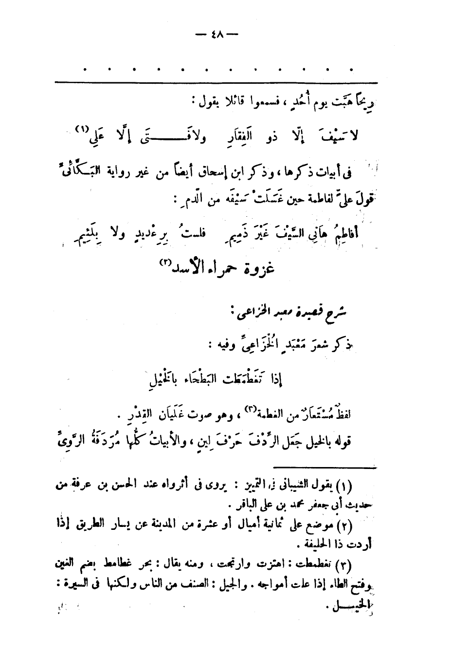 غَزْوَةُ حَمْرَاءِ الْأَسَدِ «2» شَرْحُ قَصِيدَةِ مَعْبَدٍ الْخُزَاعِيّ: