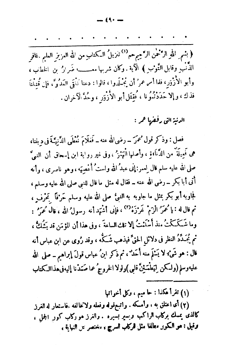 بِسْمِ اللَّهِ الرَّحْمنِ الرَّحِيمِ حم «1» تَنْزِيلُ الْكِتابِ مِنَ اللَّهِ الْعَزِيزِ الْعَلِيمِ. غافِرِ الذَّنْبِ وَقابِلِ التَّوْبِ الْآيَةُ. وَكَانَ شَرِبَهَا مَعَهُ ضِرَارُ بْنُ الْخَطّابِ، وَأَبُو الْأَزْوَرِ، فَلَمّا أَمَرَ عُمَرُ أَنْ يُجْلَدُوا، قَالُوا: دَعْنَا نَلْقَى الْعَدُوّ، فَإِنْ قُتِلْنَا فَذَاكَ، وَإِلّا حَدَدْتُمُونَا، فَقُتِلَ أَبُو الْأَزْوَرِ، وَحُدّ الْآخَرَانِ.