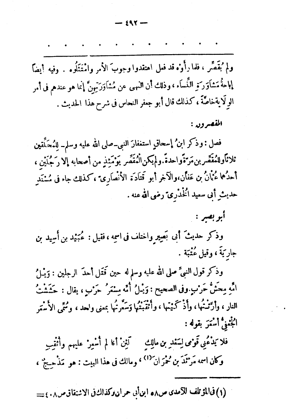 وَذَكَرَ حَدِيثَ أَبِي بَصِيرٍ وَاخْتُلِفَ فِي اسْمِهِ، فَقِيلَ: عُبَيْدُ بْنُ أَسِيدِ بْنِ جَارِيَةَ، وَقِيلَ عتبة.