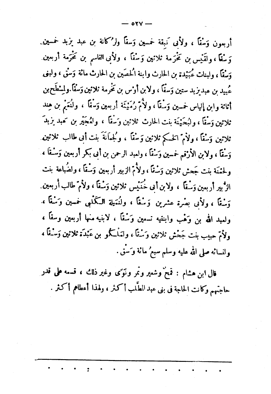قَالَ ابْنُ هِشَامٍ: قَمْحٌ وَشَعِيرٌ وَتَمْرٌ وَنَوًى وَغَيْرُ ذَلِكَ، قَسَمَهُ عَلَى قَدْرِ حَاجَتِهِمْ وَكَانَتْ الْحَاجَةُ فِي بَنِي عَبْدِ الْمُطّلِبِ أَكْثَرَ، وَلِهَذَا أَعْطَاهُمْ أَكْثَرَ.