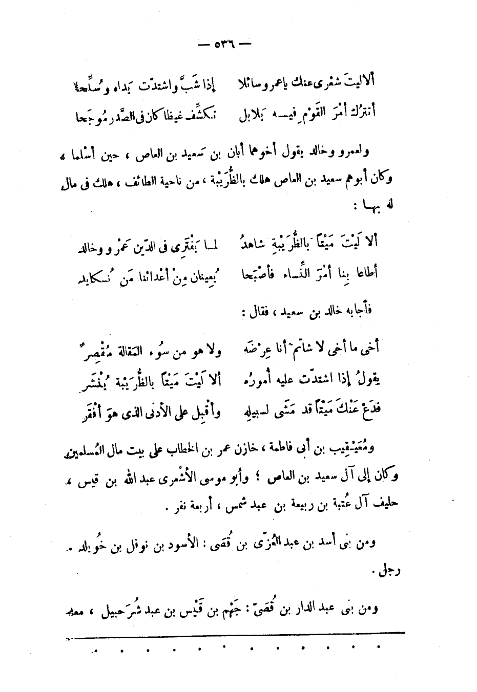 وَلِعَمْرِو وَخَالِدٍ يَقُولُ أَخُوهُمَا أَبَانُ بْنُ سَعِيدِ بْنِ الْعَاصِ، حِينَ أَسْلَمَا، وَكَانَ أَبُوهُمْ سَعِيدُ بْنُ الْعَاصِ هَلَكَ بِالظّرَيْبَةِ، مِنْ نَاحِيَةِ الطّائِفِ، هَلَكَ فِي مَالٍ لَهُ بِهَا: