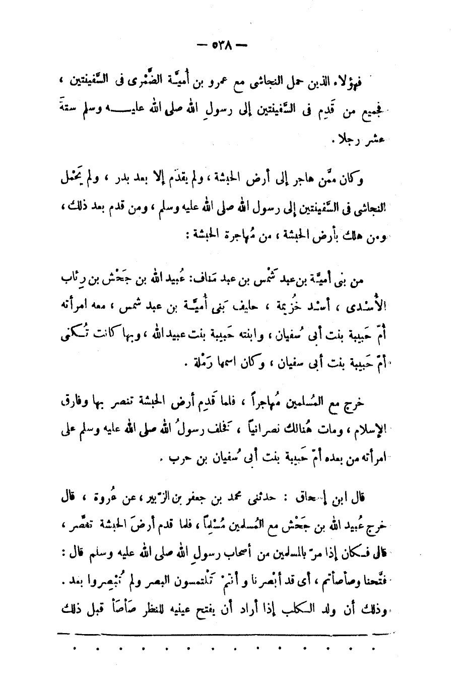 قَالَ ابْنُ إسْحَاقَ: حَدّثَنِي مُحَمّدُ بْنُ جَعْفَرِ بْنِ الزّبَيْرِ، عن عروة، قال خرج عُبَيْدُ اللهِ بْنُ جَحْشٍ مَعَ الْمُسْلِمِينَ مُسْلِمًا، فلما قدم أرض الحبشة تقصّر، قَالَ فَكَانَ إذَا مَرّ بِالْمُسْلِمِينَ مِنْ أَصْحَابِ رَسُولِ اللهِ صَلَّى اللَّهُ عَلَيْهِ وسلم قال: