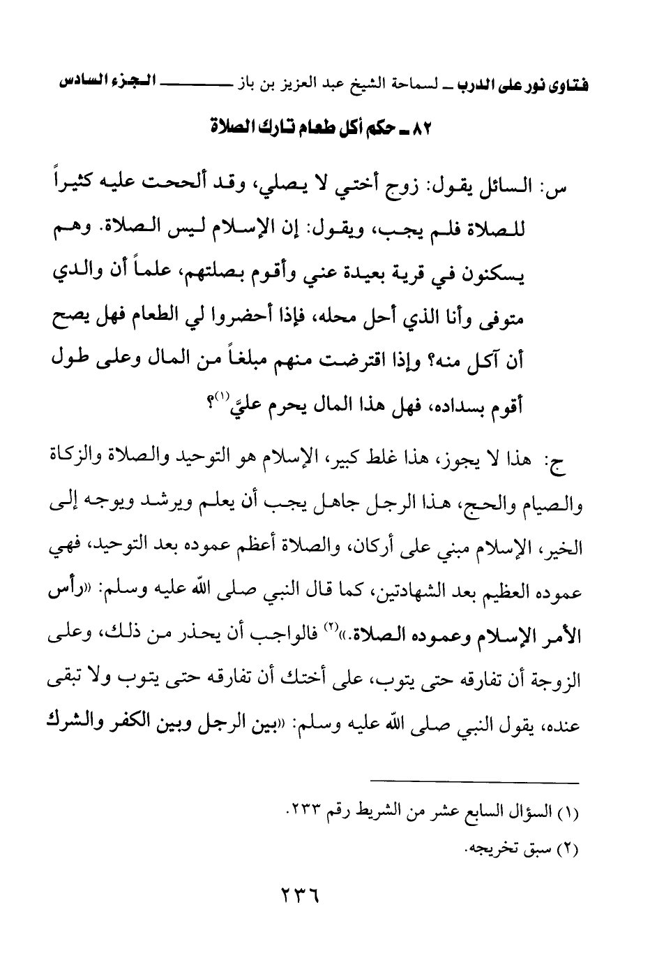 82 – حكم أكل طعام تارك الصلاة