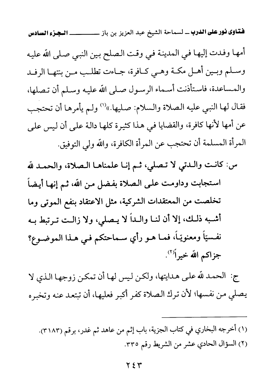 كتاب فتاوى نور على الدرب لابن باز بعناية الشويعر (اسم الجزء: 6)