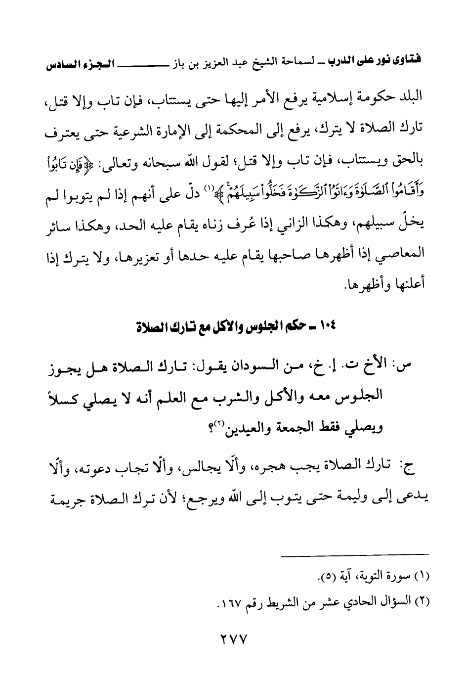 104 – حكم الجلوس والأكل مع تارك الصلاة