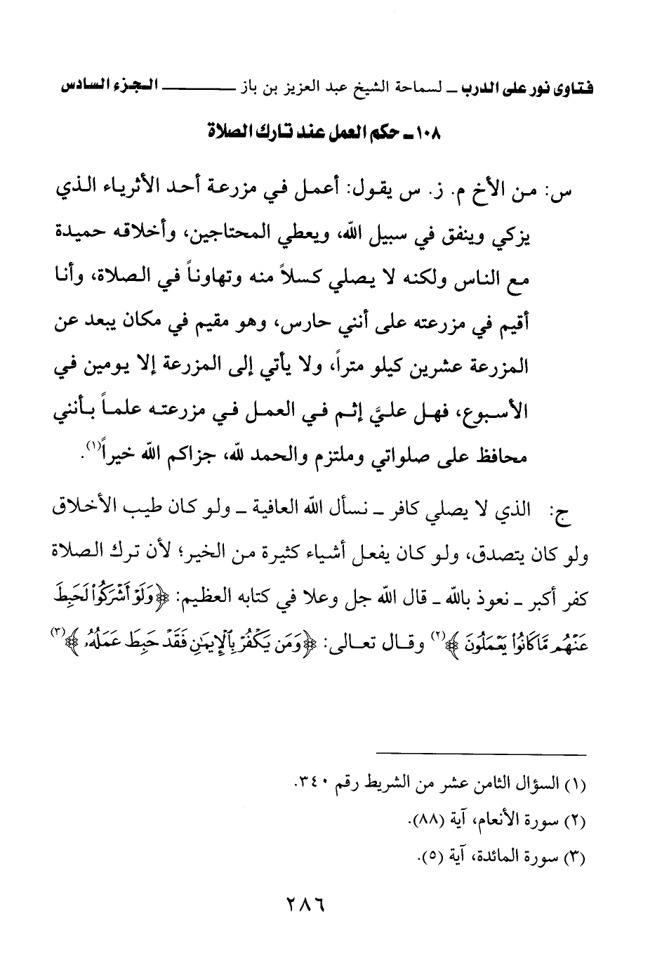 108 – حكم العمل عند تارك الصلاة