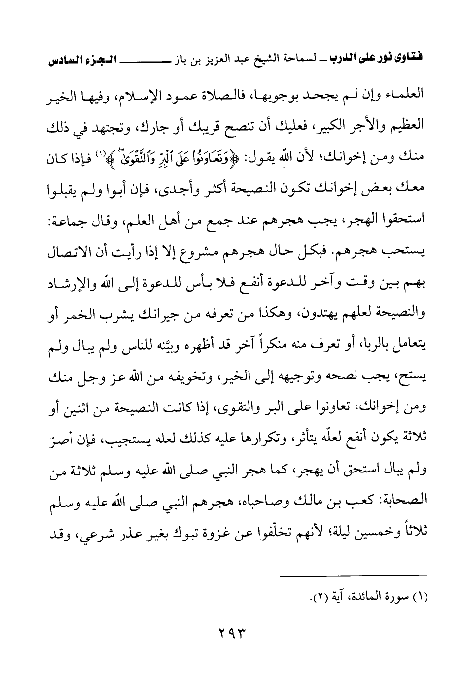 العلماء وإن لم يجحد بوجوبها، فالصلاة عمود الإسلام، وفيها الخير العظيم والأجر الكبير، فعليك أن تنصح قريبك أو جارك، وتجتهد في ذلك منك ومن إخوانك؛ لأن الله يقول: {وَتَعَاوَنُوا عَلَى الْبِرِّ وَالتَّقْوَى} (¬1) فإذا كان معك بعض إخوانك تكون النصيحة أكثر وأجدى، فإن أبوا ولم يقبلوا استحقوا الهجر، يجب هجرهم عند جمع من أهل العلم، وقال جماعة: يستحب هجرهم.