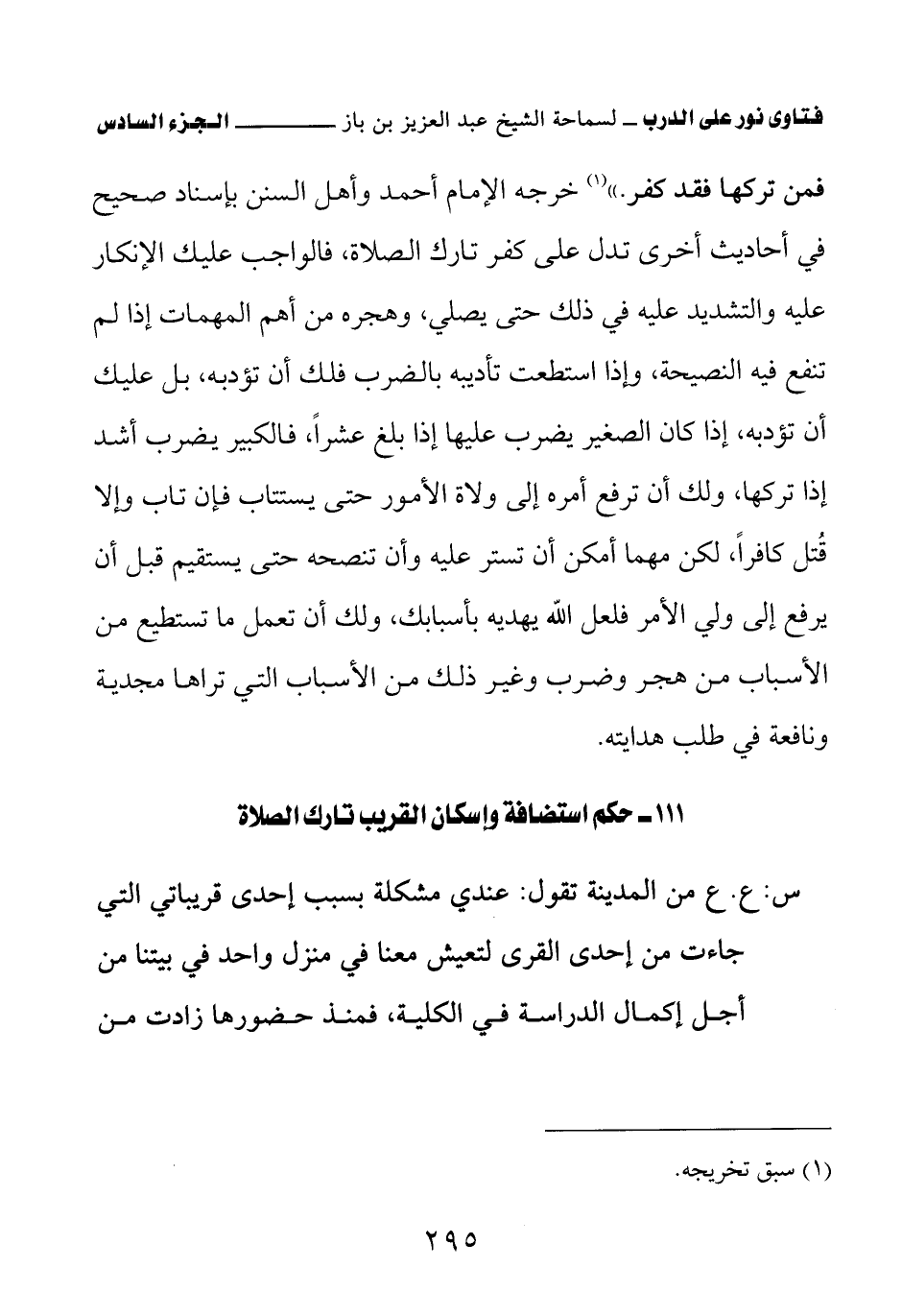 111 – حكم استضافة وإسكان القريب تارك الصلاة