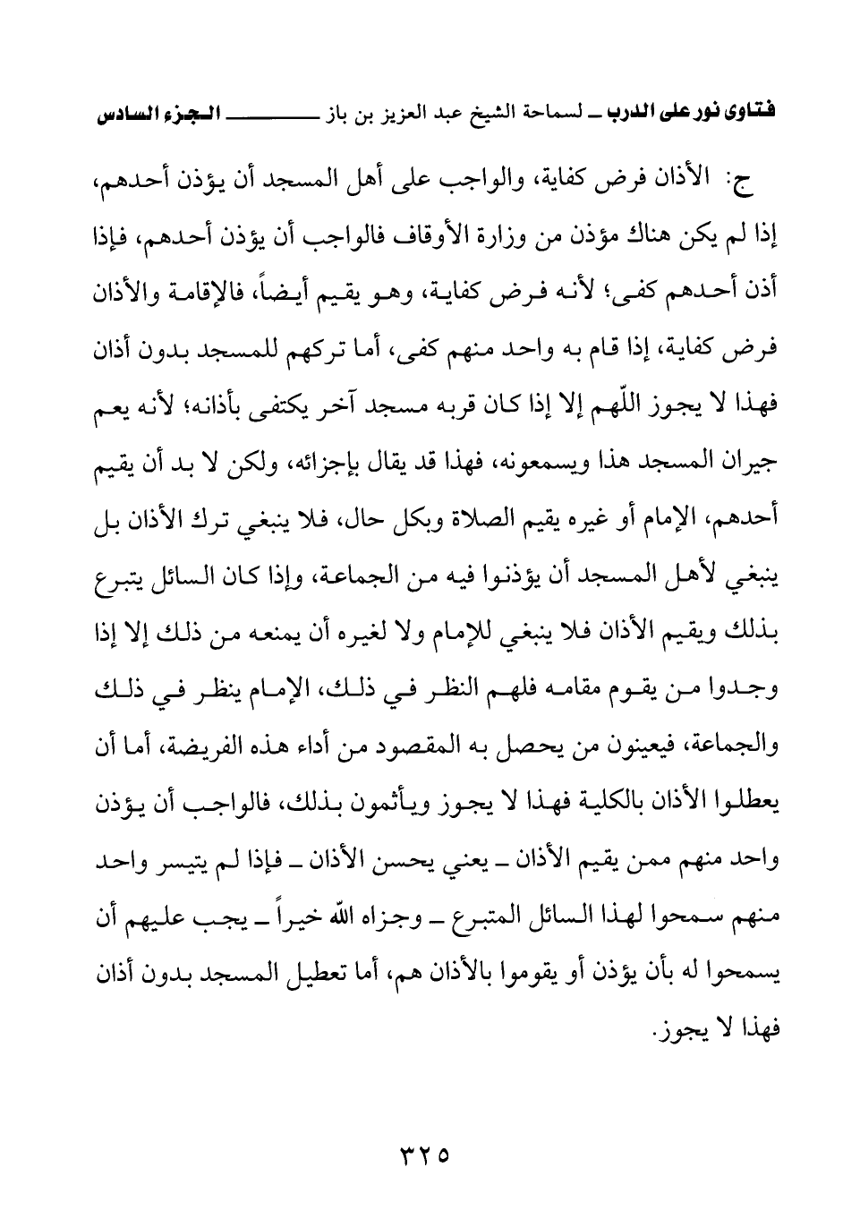 كتاب فتاوى نور على الدرب لابن باز بعناية الشويعر (اسم الجزء: 6)
