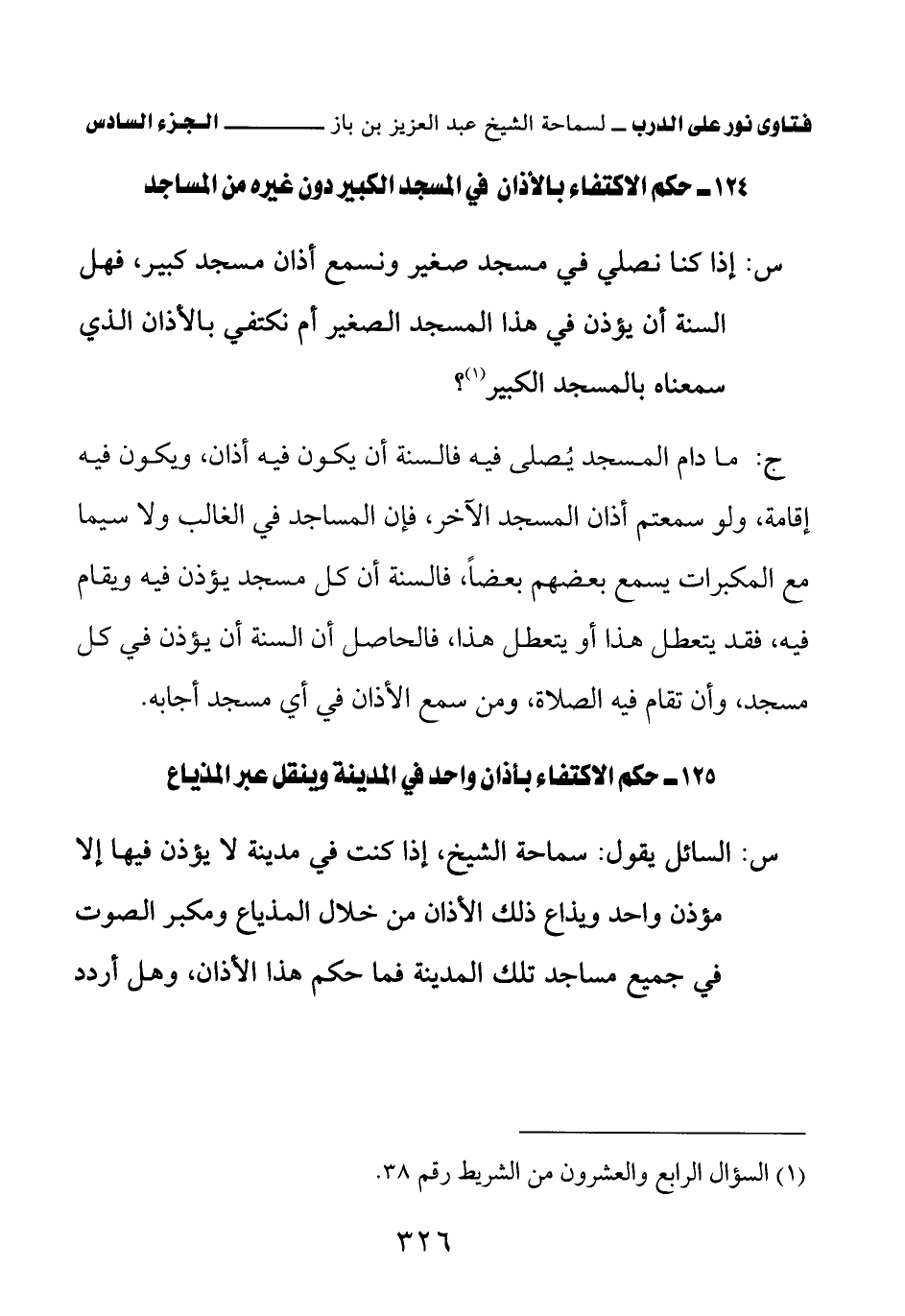125 – حكم الاكتفاء بأذان واحد في المدينة وينقل عبر المذياع