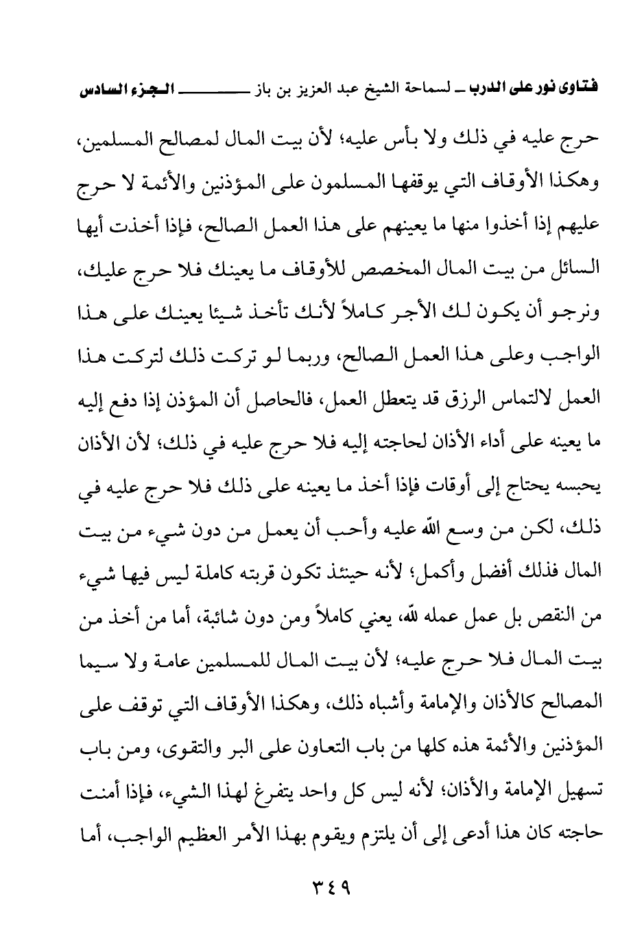 كتاب فتاوى نور على الدرب لابن باز بعناية الشويعر (اسم الجزء: 6)