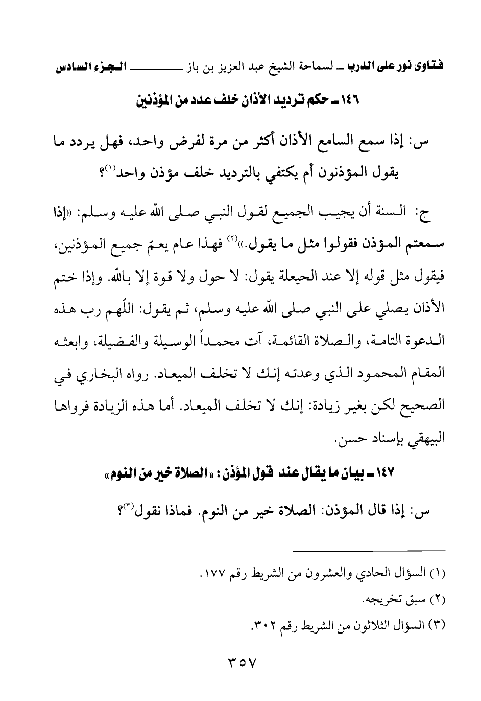 146 - حكم ترديد الأذان خلف عدد من المؤذنين