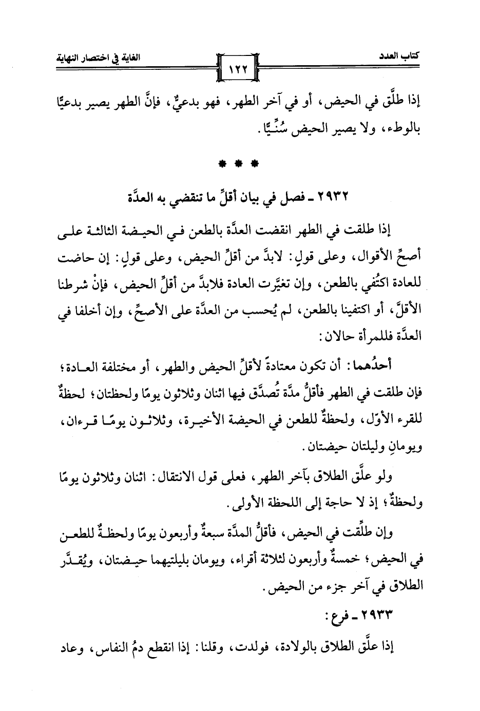 2932 - فصل في بيان أقلِّ ما تنقضي به العدَّة