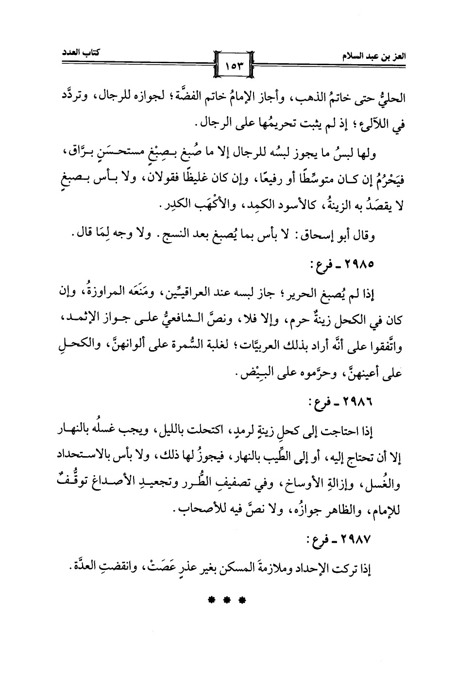 إذا لم يُصبغ الحرير؛ جاز لبسه عند العراقيِّين، ومَنَعَه المراوزةُ، وإن كان في الكحل زينةٌ حرم، وإلا فلا، ونصَّ الشافعيُّ على جواز الإثمد، واتَّفقوا على أنَّه أراد بذلك العربيَّات؛ لغلبة السُّمرة على ألوانهنَّ، والكحلِ على أعينهنَّ، وحرَّموه على البِيْض.