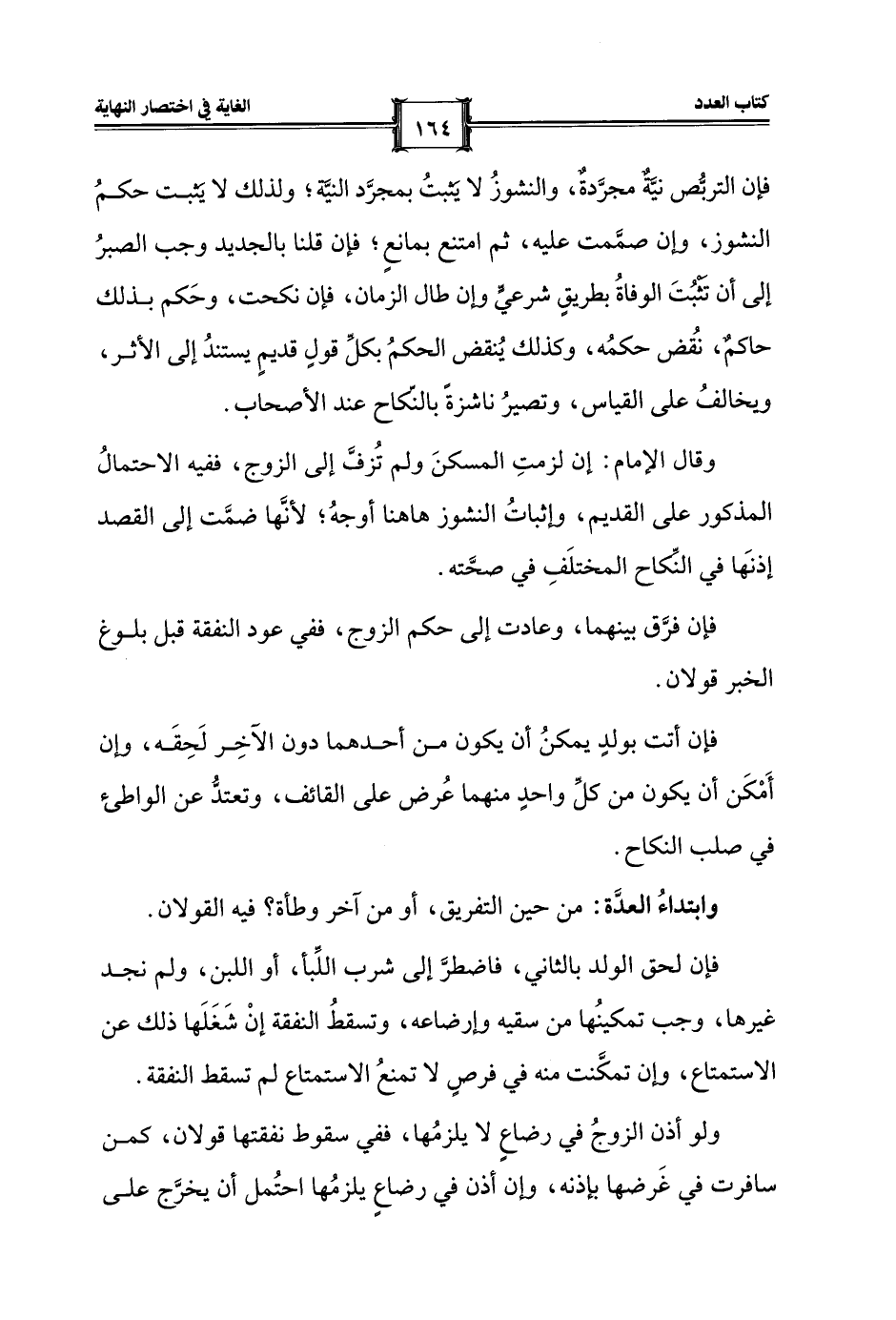 فإن التربُّص نيَّةٌ مجرَّدةٌ، والنشوزُ لا يَثبتُ بمجرَّد النيَّة؛ ولذلك لا يَثبت حكمُ النشوز، وإن صمَّمت عليه، ثم امتنع بمانعٍ؛ فإن قلنا بالجديد وجب الصبرُ إلى أن تَثْبُتَ الوفاةُ بطريقٍ شرعيٍّ وإن طال الزمان، فإن نكحت، وحَكم بذلك حاكمٌ، نُقض حكمُه، وكذلك يُنقض الحكمُ بكلِّ قولٍ قديمٍ يستندُ إلى الأثر، ويخالفُ على القياس، وتصيرُ ناشزةً بالنكاح عند الأصحاب.