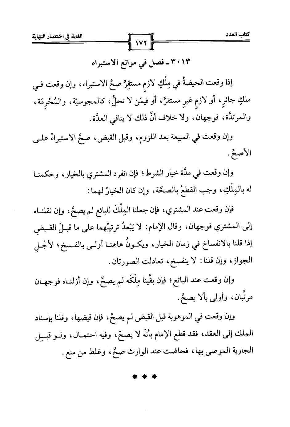 إذا وقعت الحيضةُ في مِلْكٍ لازمٍ مستقِرٍّ صحَّ الاستبراء، وإن وقعت في ملكٍ جائرٍ، أو لازمٍ غيرِ مستقرٍّ، أو فيمَن لا تحلُّ، كالمجوسيّة، والمُحْرِمَة، والمرتدَّة، فوجهان، ولا خلاف أنَّ ذلك لا ينافي العدَّة.