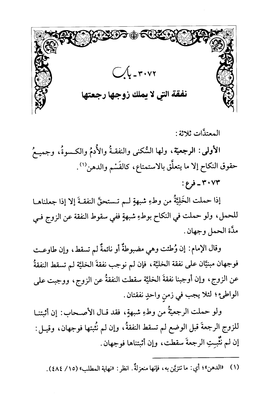 (¬1) "الدهن"؛ أي: ما تتزيَّن به، فإنها منعزلةٌ. انظر: "نهاية المطلب" (15/ 484).