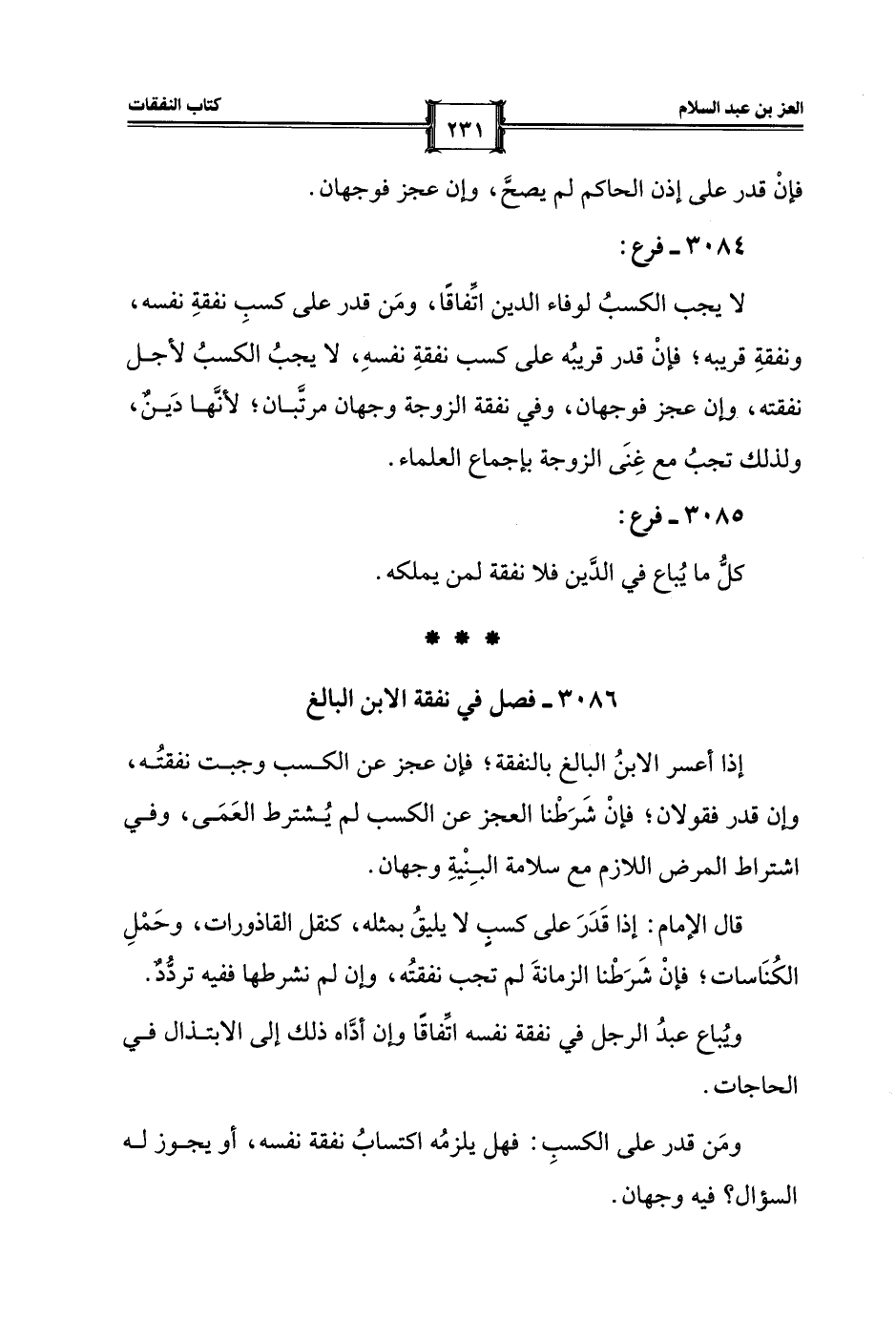 ومَن قدر على الكسبِ: فهل يلزمُه اكتسابُ نفقة نفسه، أو يجوز له السؤال؟ فيه وجهان.