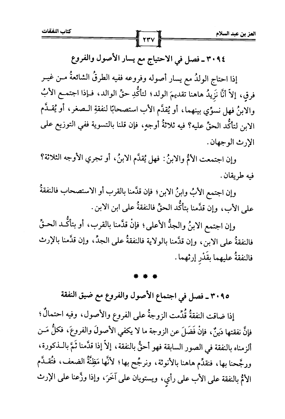 3095 - فصل في اجتماع الأصول والفروع مع ضيق النفقة