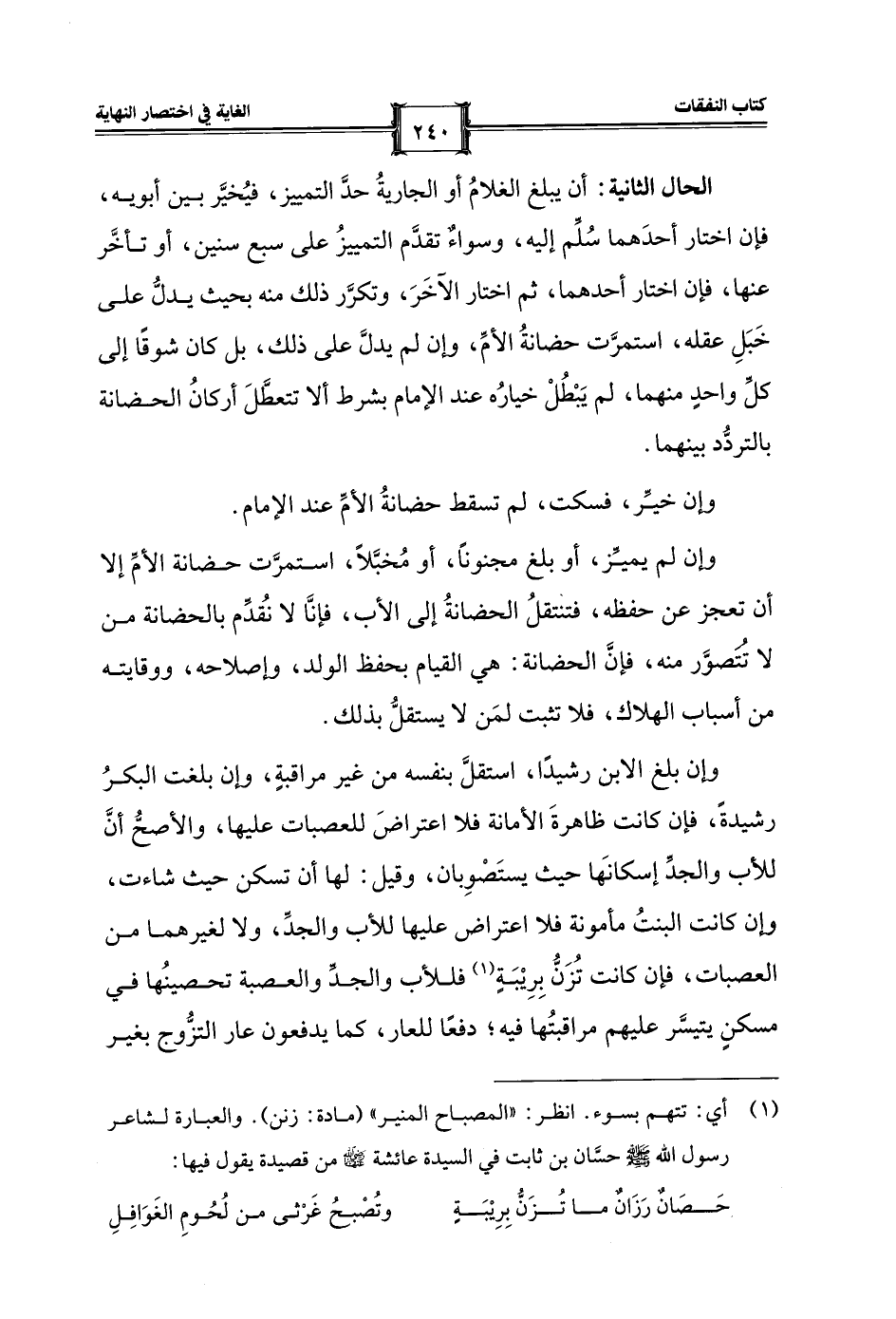 حَصَانٌ رَزَانٌ ما تُزَنُّ بِرِيْبَةٍ ... وتُصْبحُ غَرْثى من لُحُومِ الغَوَافِلِ
