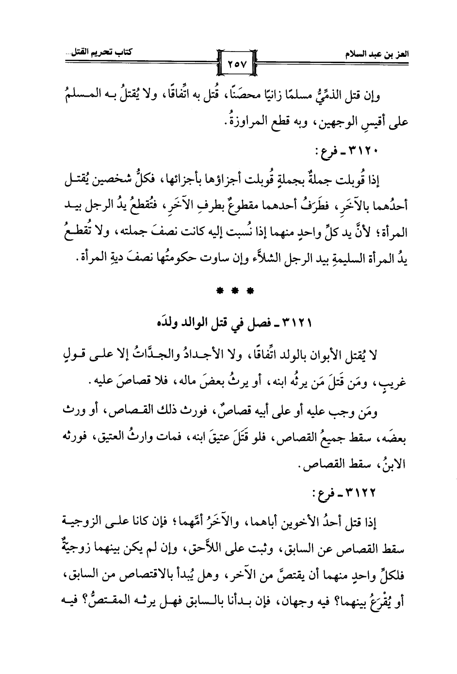 لا يُقتل الأبوان بالولد اتِّفاقًا، ولا الأجدادُ والجدَّاتُ إلا على قولٍ غريبٍ، ومَن قَتلَ مَن يرثُه ابنه، أو يرثُ بعضَ ماله، فلا قصاصَ عليه.