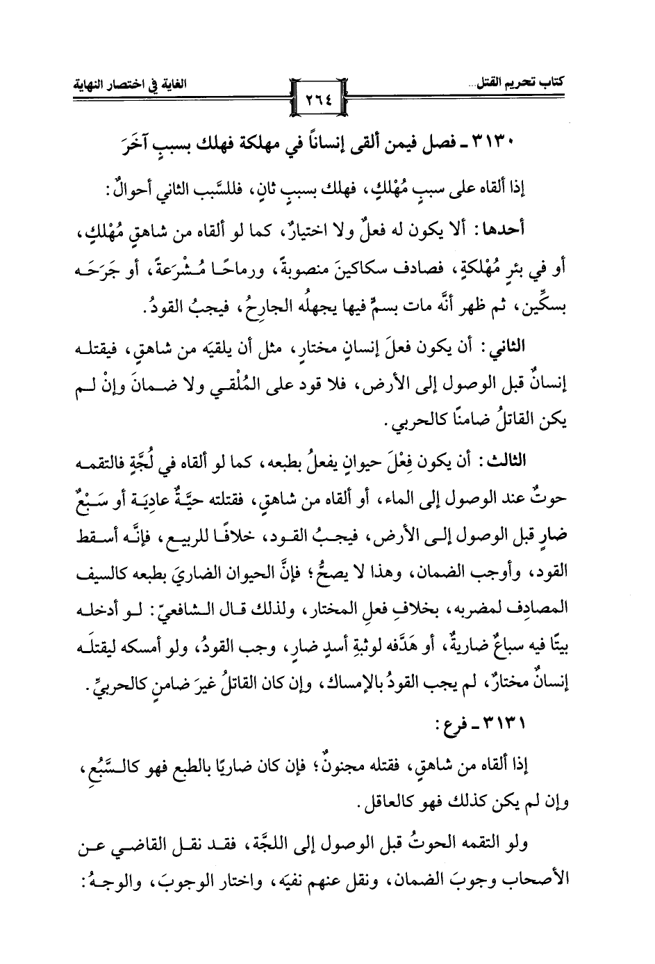 3130 - فصل فيمن ألقى إنسانًا في مهلكة فهلك بسببٍ آخَرَ