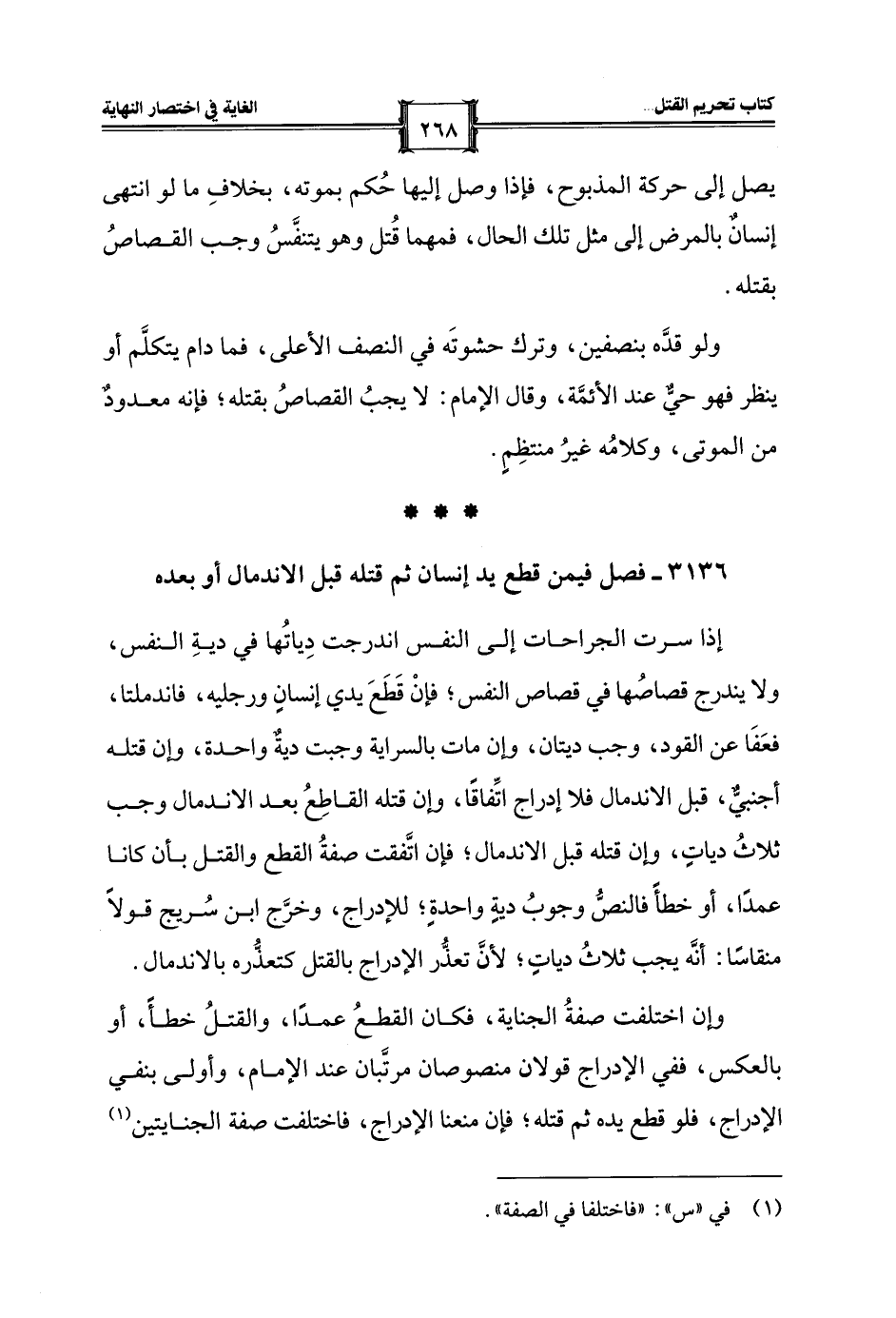 3136 - فصل فيمن قطع يد إنسان ثم قتله قبل الاندمال أو بعده